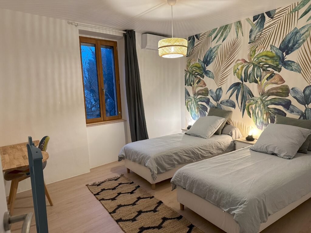Le gîte entièrement rénové se situe au 1er étage d’une ancienne magnanerie. Vous disposerez : – d’un logement avec climatisation réversible de 51 m2 pouvant accueillir jusqu’à 4 personnes – d’une terrasse privative avec pergola – d’un accès au jardin commun arboré de 1000 m2 pour se détendre et se rafraîchir dans la grande piscine (5m x 10 m) – d’une buanderie commune avec lave linge et sèche linge – d’une salle commune de divertissement : bibliothèque, baby foot, piano droit, jeux de société, guides touristiques et livres, table de pingpong – d’un parking privatif avec charge électrique possible.